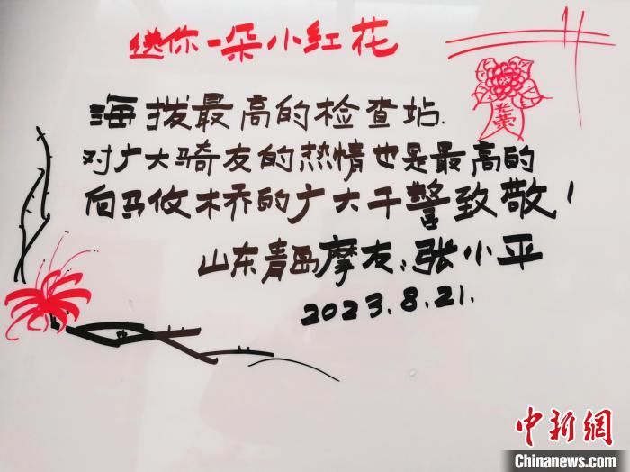圖為馬攸橋邊境檢查站“愛(ài)心驛站”里騎友留言。申孟勇 攝