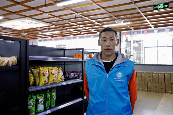 為學(xué)生全面發(fā)展夯實基礎(chǔ),學(xué)校特別設(shè)置了多樣化的功能室。每周,來自藏醫(yī)專業(yè)的高三學(xué)生索日吉和卡松旺堆,都會在課余時間在校園電視臺擔(dān)任播音主持人?!霸谶@里類似的機會有很多,能見到的、聽到的、觸摸到的變多了,眼界也變開闊了?!笨ㄋ赏颜f。同為高三學(xué)生的朗崗平措,每天都會去模擬創(chuàng)業(yè)實訓(xùn)基地的學(xué)生生活超市值班。作為店長,他現(xiàn)在已經(jīng)熟練掌握了超市運營中各環(huán)節(jié)的操作流程,并能夠完全獨立地和各企業(yè)對接進貨。據(jù)了解,自去年12月正式開業(yè)起,學(xué)生生活超市已盈利42萬元,未來這些收入將作為學(xué)生創(chuàng)業(yè)啟動基金。