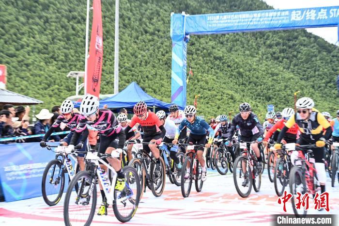 9月9日,第九屆環(huán)巴松措國際山地自行車越野競速賽在西藏林芝開賽。中新社記者 趙朗 攝