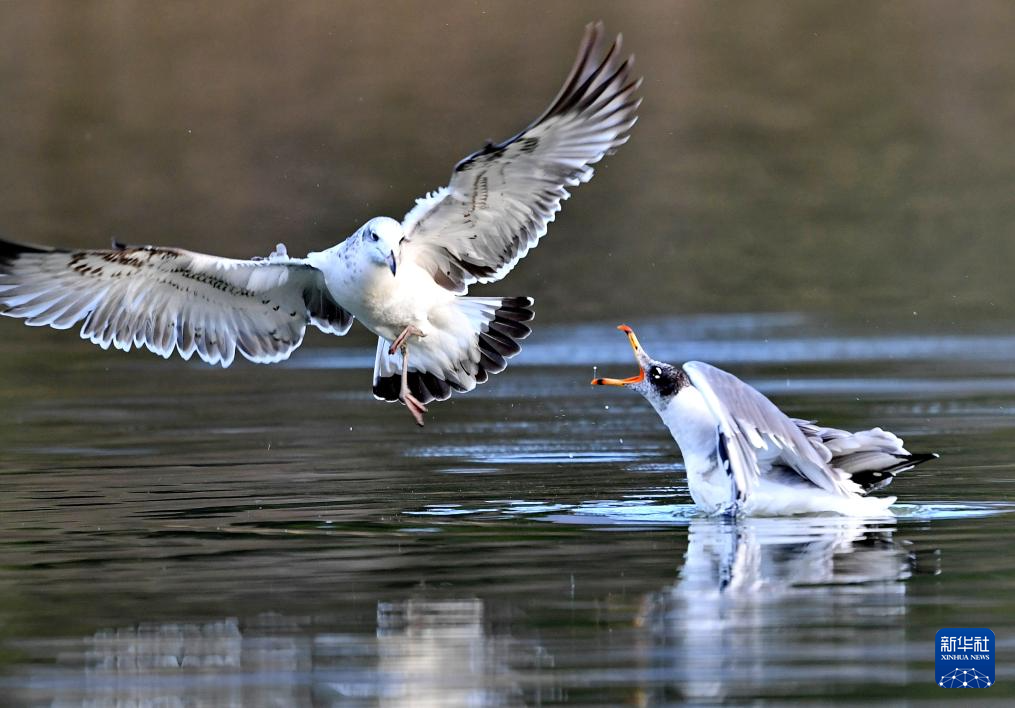 金秋十月,漁鷗在西藏拉薩市國家級自然保護(hù)區(qū)拉魯濕地里嬉戲,惹人喜愛。