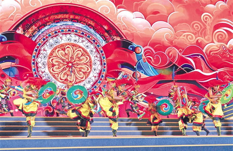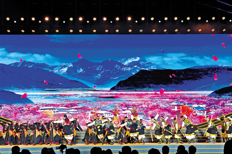 西藏自治區(qū)歌舞團、林芝市民族藝術(shù)團表演的開場歌舞《扎西德勒》。記者 洛桑 攝