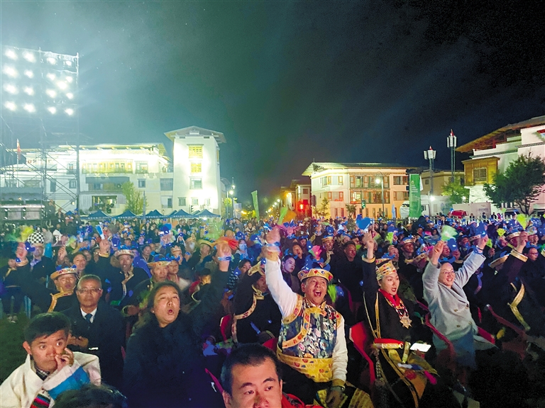 觀眾觀看第三屆中國西藏“環(huán)喜馬拉雅”國際合作論壇文藝演出。記者 洛?!z