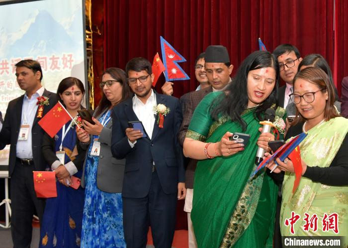 研討會后,雙方來賓進行了聯誼活動。中方人員用尼語演唱尼泊爾歌曲《絲帶飄飄》,尼方朋友用中文演唱《茉莉花》,現場氣氛熱烈友好。雙方人員手舉兩國國旗,載歌載舞,表達了中尼民間真摯的情誼。