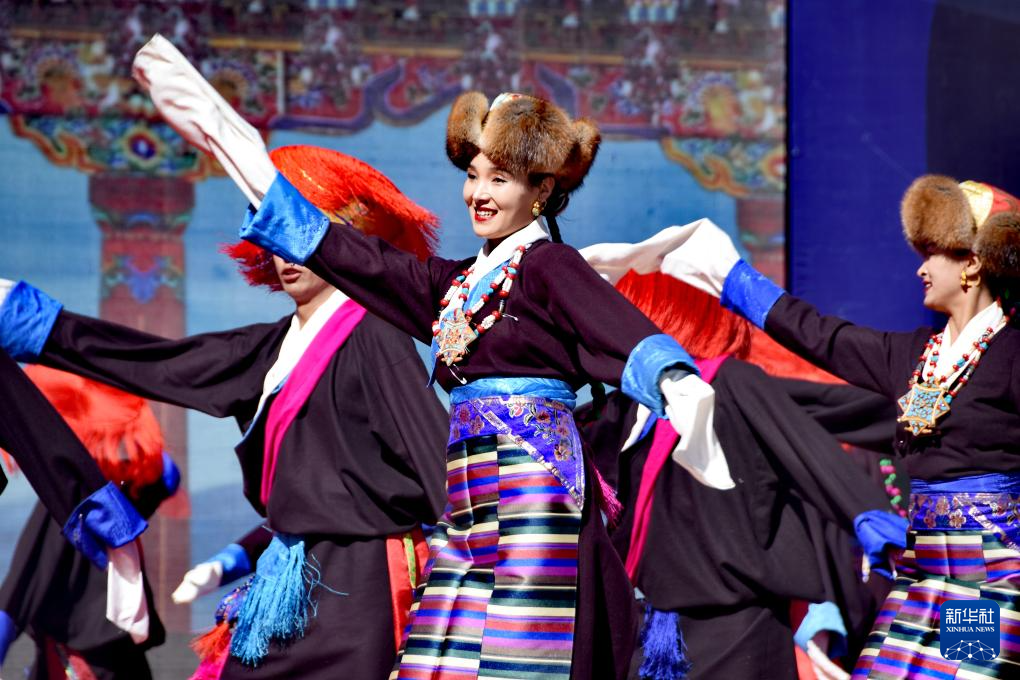 10月8日,演員在開(kāi)幕式上表演藏戲。新華社記者 邵澤東 攝