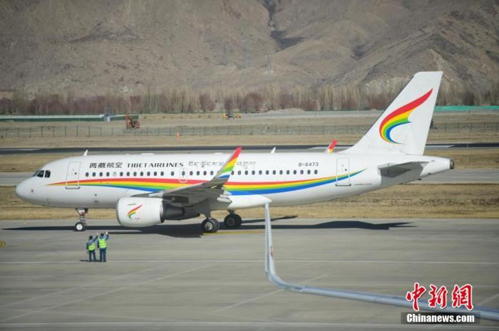 1月7日,一架西藏航空客機(jī)在拉薩貢嘎機(jī)場(chǎng)準(zhǔn)備起飛。當(dāng)日是2023年春運(yùn)首日,西藏拉薩貢嘎機(jī)場(chǎng)旅客出行井然有序。(中新社記者 貢嘎來(lái)松攝)
