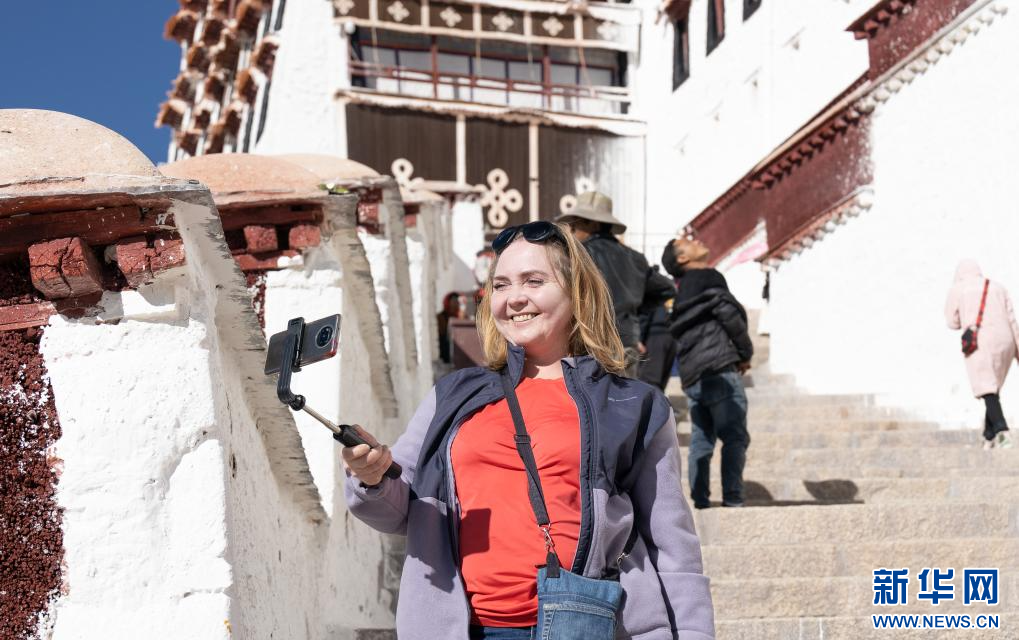 11月3日,游客在布達(dá)拉宮自拍。 新華社發(fā)(丁增尼達(dá) 攝)