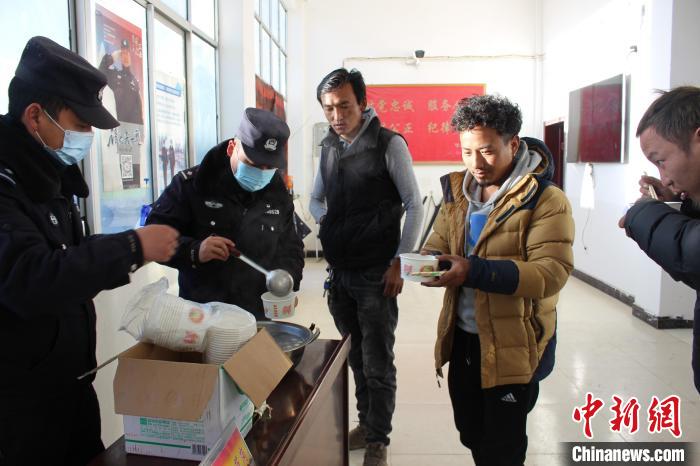 圖為西藏日喀則邊境管理支隊魯魯邊境檢查站民警在便民服務室為旅客提供暖心服務。魯魯邊境檢查站供圖