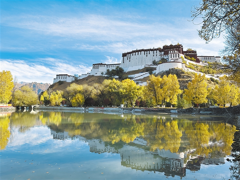 藍(lán)天、白云、湖泊、草原、樹林,拉薩深秋的色彩最為豐富,風(fēng)光最為寧靜、澄澈、壯美。