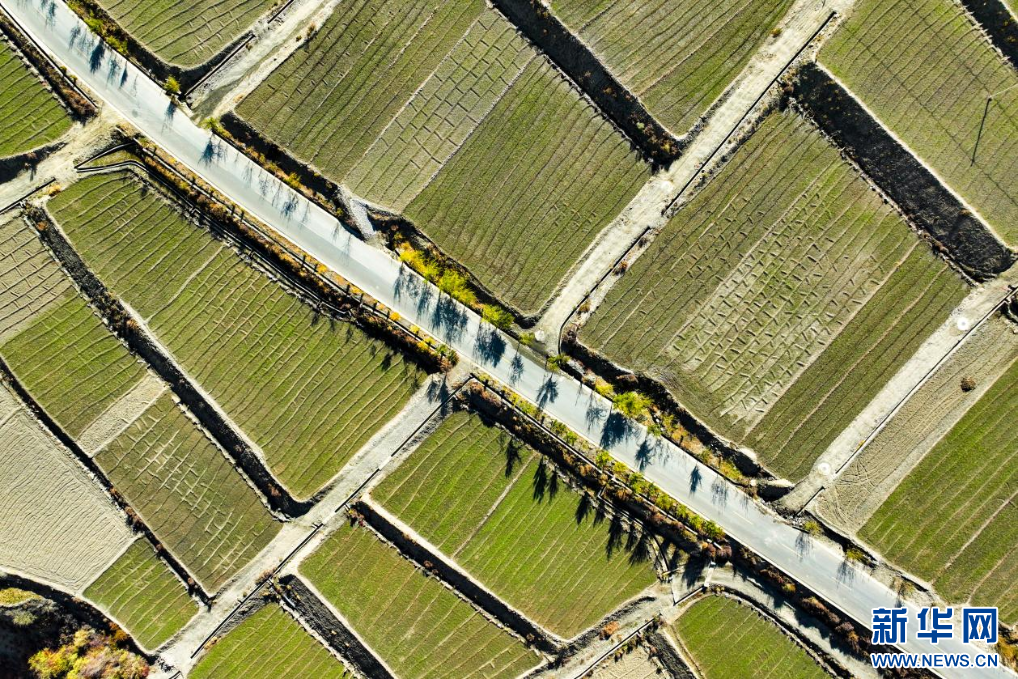 11月16日,西藏隆子縣加玉鄉(xiāng)境內(nèi)拍攝的農(nóng)田(無人機(jī)照片)。新華網(wǎng) 旦增努布 攝