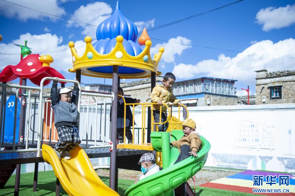 西藏措美縣卓德村幼兒園的小朋友們?cè)谡n間玩耍。新華網(wǎng) 旦增努布 攝
