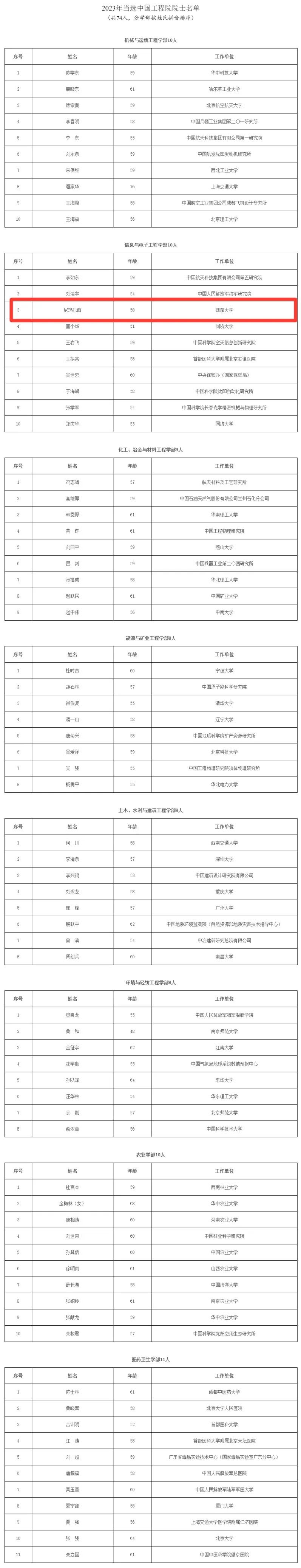 2023年當(dāng)選中國工程院院士名單如下: