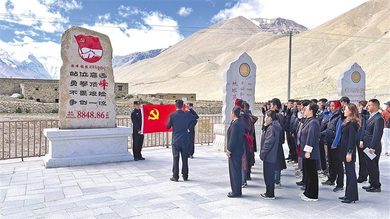 圖為定日縣警地黨組織聯(lián)合開展“珠峰領航”主題黨日活動。扎西頓珠 攝