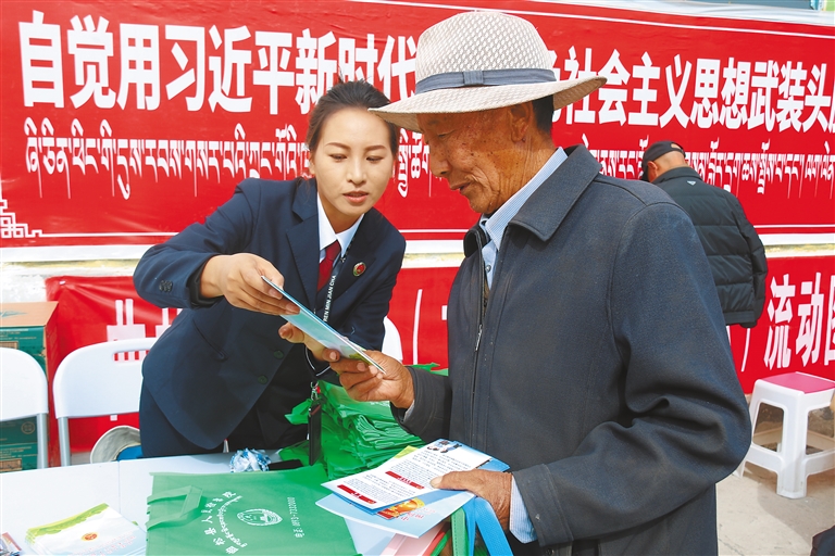 日前,曲松縣新時(shí)代文明實(shí)踐中心聯(lián)合曲松鎮(zhèn)新時(shí)代文明實(shí)踐所、瓊嘎村新時(shí)代文明實(shí)踐站開展“移風(fēng)易俗潤民心 鄉(xiāng)風(fēng)文明促振興”主題宣傳活動。圖為工作人員向群眾講解宣傳資料。
