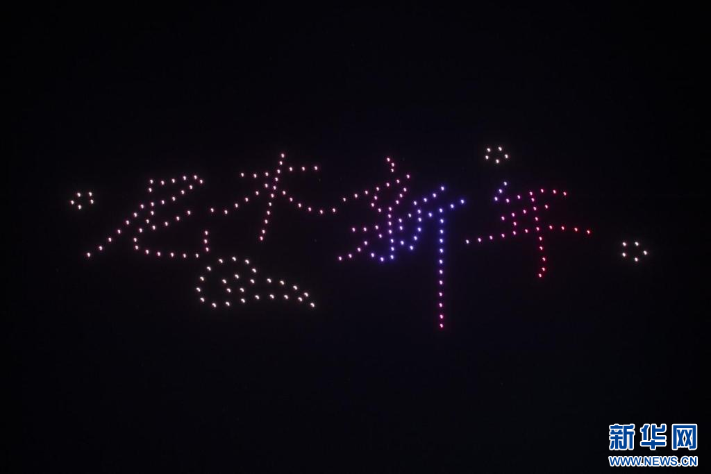 圖為1月5日無人機表演現(xiàn)場。新華網(wǎng) 旦增努布 攝