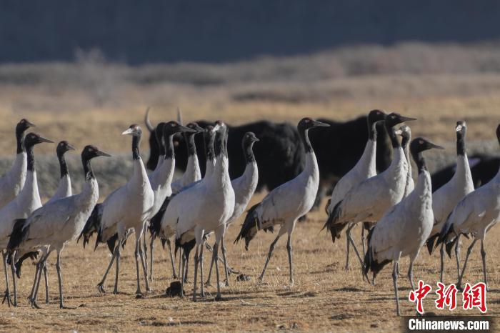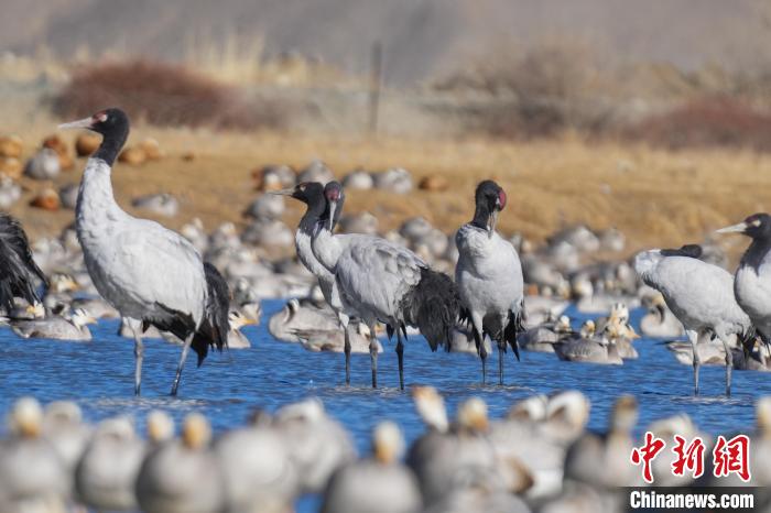 圖為在日喀則市拉孜縣越冬的黑頸鶴。盧曉娜 攝