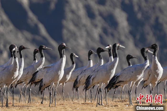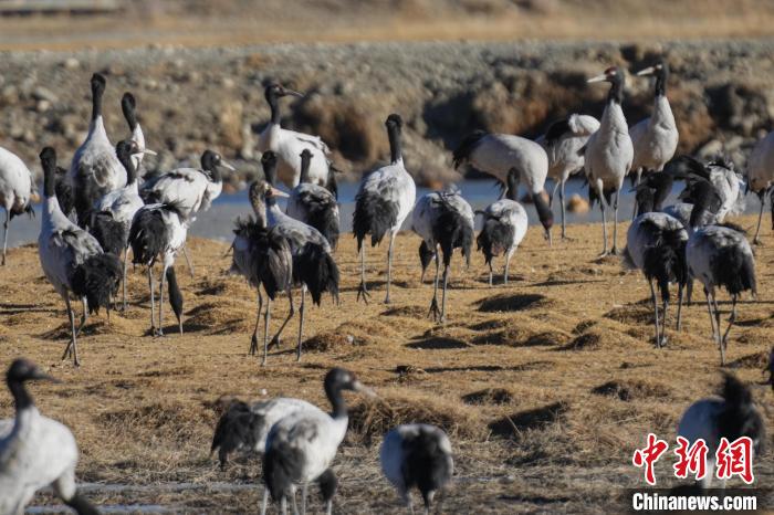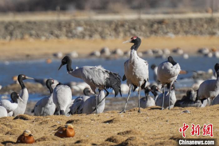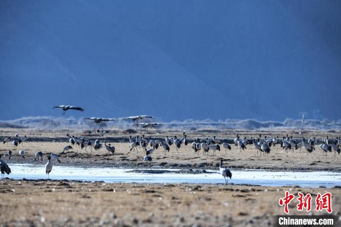 1月10日,西藏雅魯藏布江中游河谷黑頸鶴國(guó)家級(jí)自然保護(hù)區(qū)日喀則片區(qū)拉孜縣曲瑪鄉(xiāng)境內(nèi),大量越冬的黑頸鶴翩翩起舞,在濕地和農(nóng)田間覓食、嬉戲。近年來(lái),隨著國(guó)家加大青藏高原生態(tài)保護(hù)力度,西藏多措并舉實(shí)施生態(tài)建設(shè),廣大農(nóng)牧民民眾保護(hù)野生動(dòng)物的意識(shí)不斷提升,黑頸鶴及其棲息地得到了較好的保護(hù),黑頸鶴數(shù)量逐年遞增。據(jù)悉,每年11月至次年3月,日喀則市拉孜縣、謝通門(mén)縣、桑珠孜區(qū)等地都會(huì)有黑頸鶴在此棲息過(guò)冬,最高數(shù)量達(dá)到8000只左右。