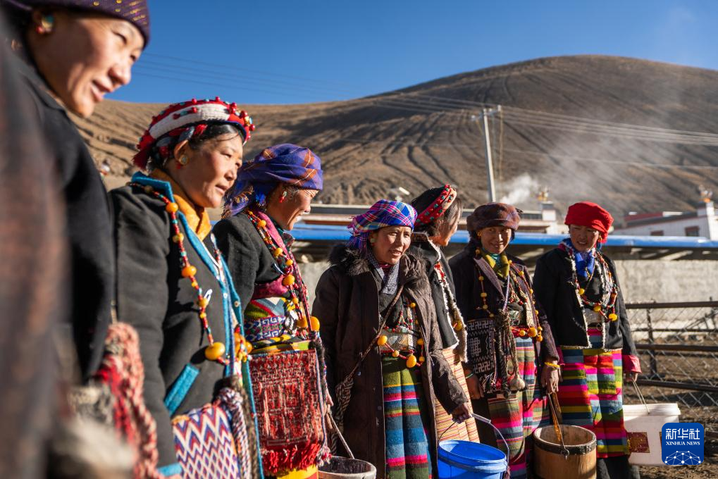 1月13日,時值西藏日喀則一帶傳統(tǒng)的農(nóng)家新年大年初二。坐落于群山間的日喀則市白朗縣東喜鄉(xiāng)思古龍村,延續(xù)傳統(tǒng)習(xí)俗,舉行擠牛奶、擲牛角等傳統(tǒng)文體比賽和翻桶接力賽等娛樂活動,以此慶祝新年。