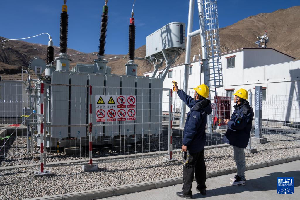 工作人員在給電站設(shè)備測(cè)溫(1月15日攝)。新華社記者 旦增尼瑪曲珠 攝
