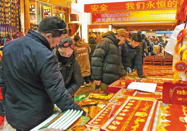 圖為市民在八廓商城內(nèi)購(gòu)買春聯(lián)。記者 丹增群培 攝