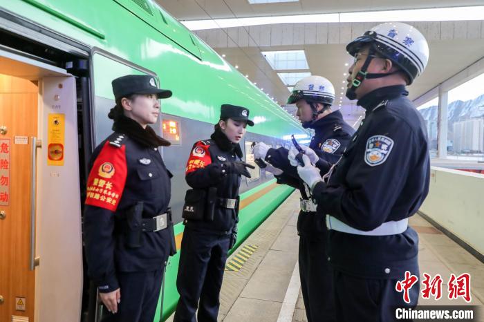 圖為春運(yùn)首日,在拉薩發(fā)往日喀則的C921次列車上,乘警向旅客送上新春的祝福。黃飛 攝