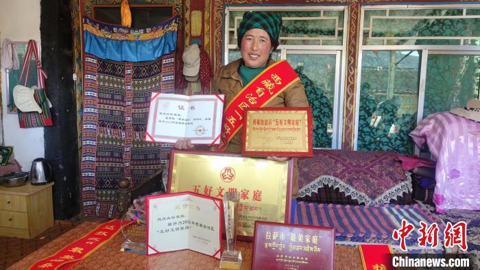 全國最美家庭、西藏自治區(qū)“五好文明家庭”、西藏自治區(qū)“最美民族團(tuán)結(jié)家庭”、拉薩市“最美家庭”……當(dāng)記者走進(jìn)德慶央宗家的客廳時,首先映入眼簾的便是擺放在藏式柜子上的諸多榮譽(yù)證書及獎杯,這是夫妻二人在平凡的生活中,遵紀(jì)守法、孝敬老人、樂于助人等贏得的肯定與榮譽(yù)。