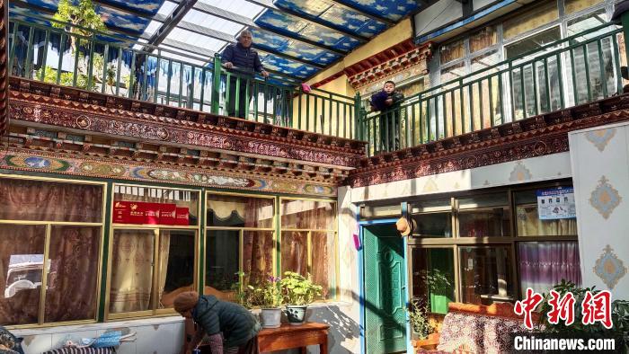 “樓上樓下都有陽光,很暖和?!?月2日,西藏網(wǎng)絡(luò)媒體新春走基層活動記者一行來到山南市瓊結(jié)縣昌嘎村,此時該村四組村民多吉在家里的二樓陽光房內(nèi)準備過年用的經(jīng)幡,他的老伴則在一樓庭院內(nèi)整理衣物,午后的陽光透過玻璃窗落在沙發(fā)上,坐在這里感覺不到冬的寒意,郁郁蔥蔥的綠植讓這所溫馨的居所生機勃勃。