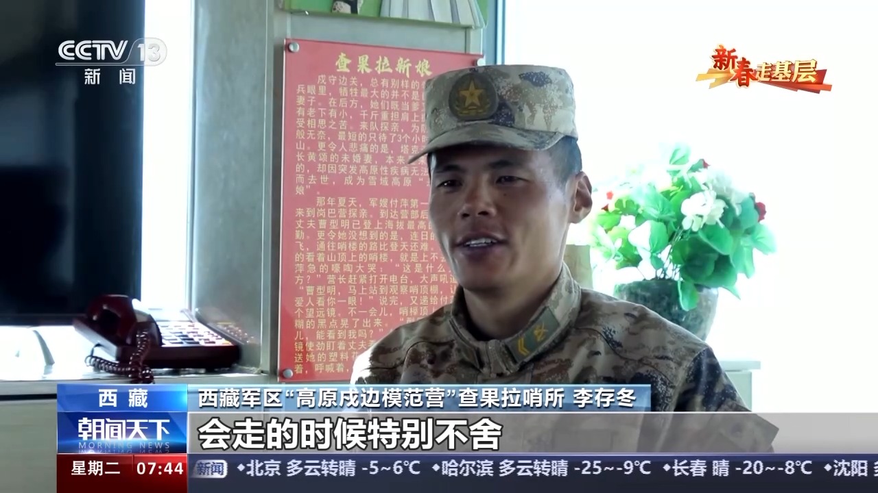 西藏軍區(qū)“高原戍邊模范營(yíng)”查果拉哨所 李存冬:因?yàn)橛袊?guó)才有家,只要國(guó)守好了,才能有家,才能更好激勵(lì)我們戍守邊關(guān),能夠更好扎根高原。