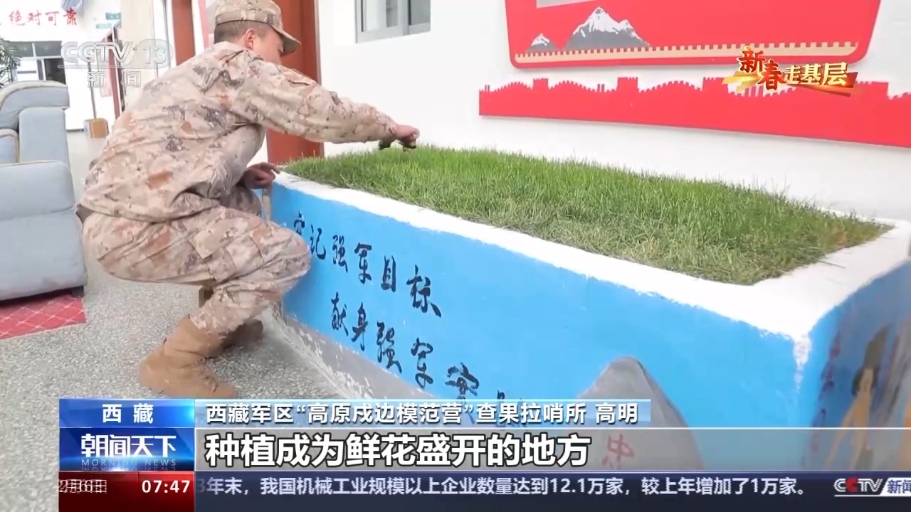 西藏軍區(qū)“高原戍邊模范營(yíng)”查果拉哨所 高明:我們的戰(zhàn)士現(xiàn)在正在養(yǎng)護(hù)我們的花草。在海拔5318米的這個(gè)地方,我們的花草非常難長(zhǎng),為了能夠營(yíng)造這種氛圍,我們還是想把這個(gè)地方能夠種植成為鮮花盛開的地方。