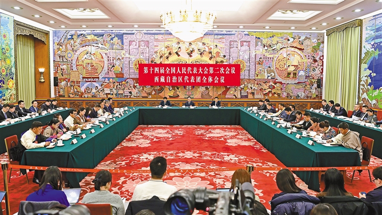 3月6日,西藏代表團(tuán)舉行全體會(huì)議,傳達(dá)學(xué)習(xí)習(xí)近平總書記在參加十四屆全國(guó)人大二次會(huì)議江蘇代表團(tuán)審議時(shí)的重要講話精神,繼續(xù)審議政府工作報(bào)告,審查計(jì)劃報(bào)告和草案、預(yù)算報(bào)告和草案。