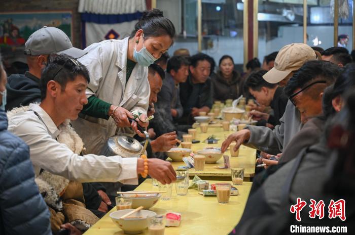 3月14日,西藏拉薩,民眾在大昭寺附近的老牌甜茶館光明港瓊休閑喝茶。中新社記者 貢嘎來(lái)松 攝