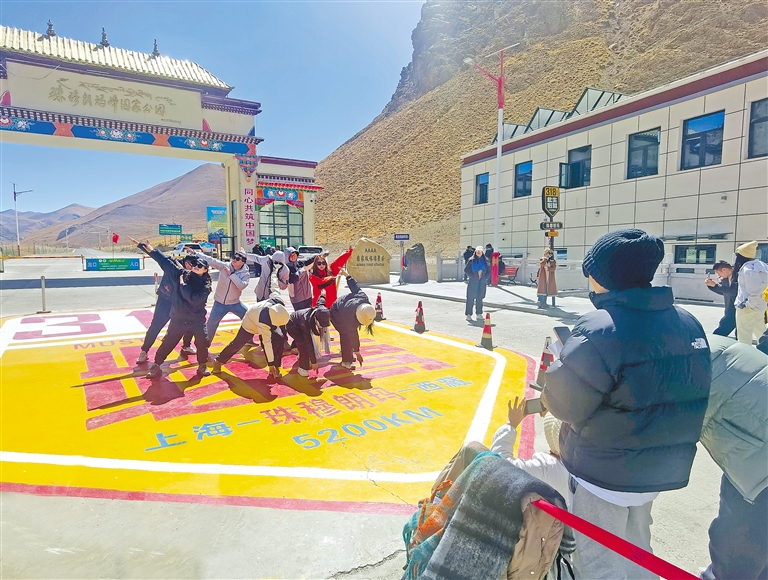 圖為珠峰北大門,游客打卡拍照。本網(wǎng)記者 楊子彥 扎西頓珠 攝