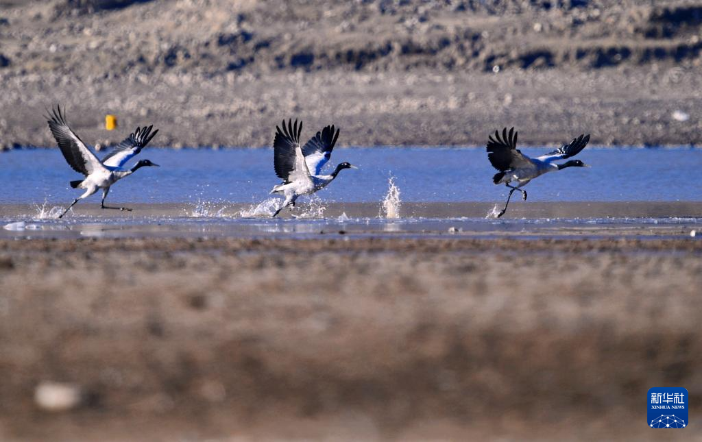 隨著氣候轉(zhuǎn)暖,位于雅魯藏布江中游河谷黑頸鶴國家級自然保護區(qū)內(nèi)的西藏拉薩林周縣虎頭山水庫漸漸喧鬧起來,在此越冬的黑頸鶴開始春季遷徙,飛往色林錯黑頸鶴國家級自然保護區(qū)、羌塘國家級自然保護區(qū)以及甘肅、青海等地。