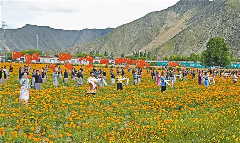 在新時(shí)代黨的治藏方略引領(lǐng)下,在全國(guó)人民大力支持下,西藏各族干部群眾團(tuán)結(jié)奮斗,各項(xiàng)事業(yè)取得全方位進(jìn)步、歷史性成就。西藏社會(huì)大局持續(xù)穩(wěn)定向好、經(jīng)濟(jì)建設(shè)全面快速發(fā)展、人民生活水平不斷提高、民族和睦宗教和順、文化事業(yè)繁榮進(jìn)步、生態(tài)安全屏障日益堅(jiān)實(shí)、邊疆鞏固邊境安全、黨的建設(shè)全面加強(qiáng),西藏各族人民與全國(guó)人民一道迎來了從站起來、富起來到強(qiáng)起來的偉大飛躍,踏上了全面建設(shè)社會(huì)主義現(xiàn)代化國(guó)家新征程。