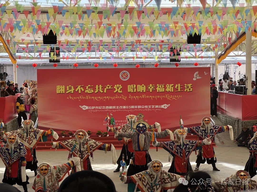 拉薩市紀(jì)念西藏民主改革65周年群眾性文藝演出在宗角祿康公園舉行。