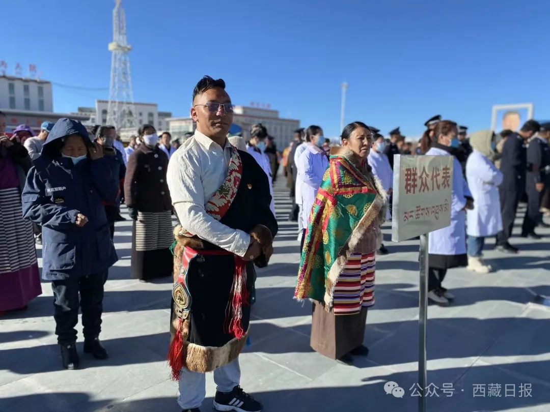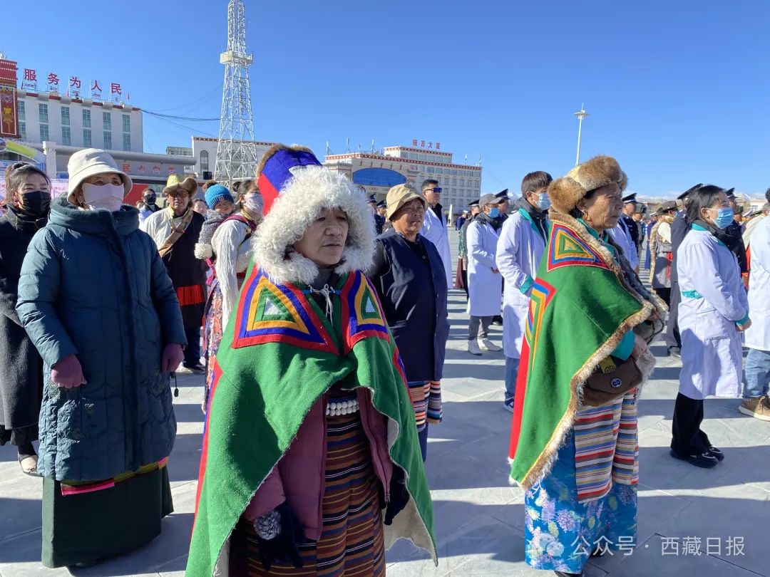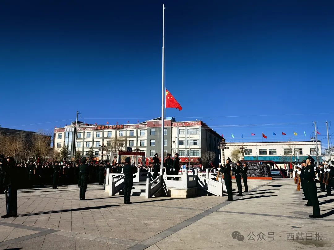 日喀則市南木林縣各族干部群眾1500余人聚集在民族團(tuán)結(jié)廣場舉行紀(jì)念西藏百萬農(nóng)奴解放65周年升國旗唱國歌儀式。