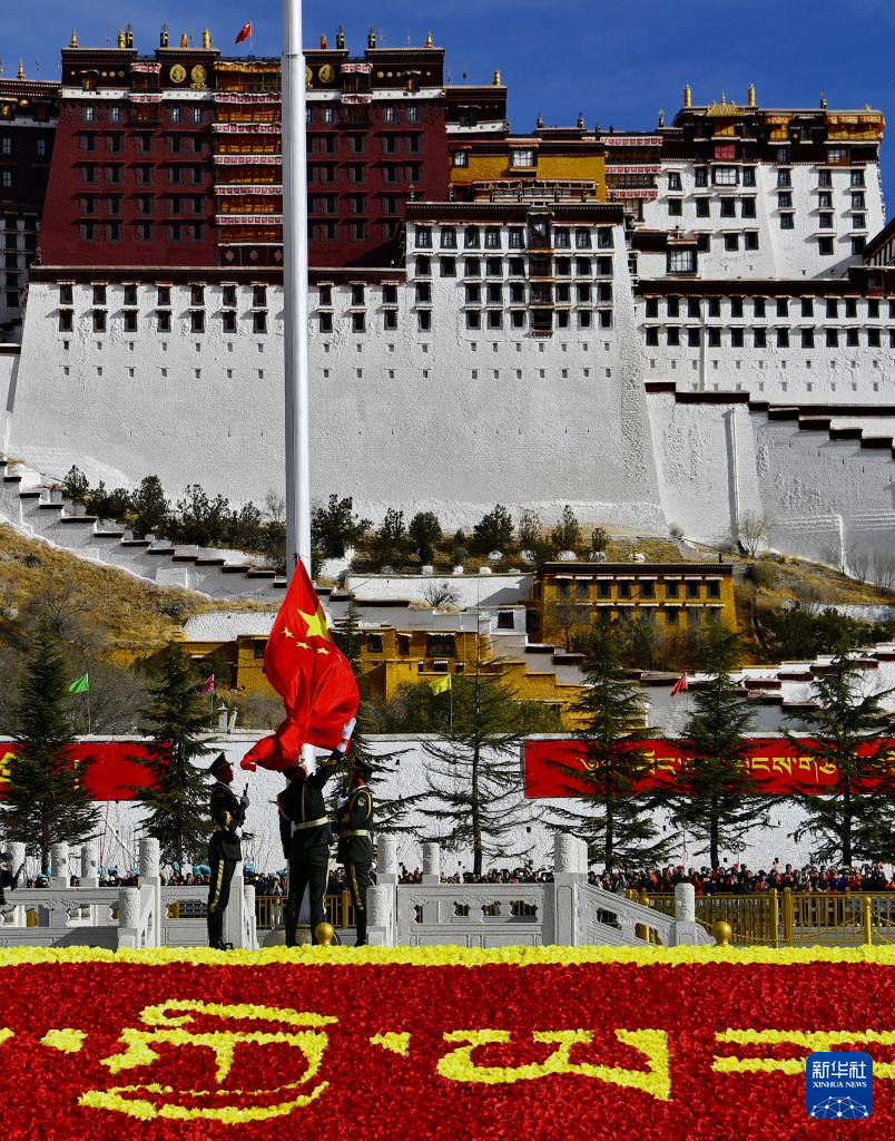 3月28日,拉薩布達(dá)拉宮廣場舉行升旗儀式。新華社記者 張汝鋒 攝
