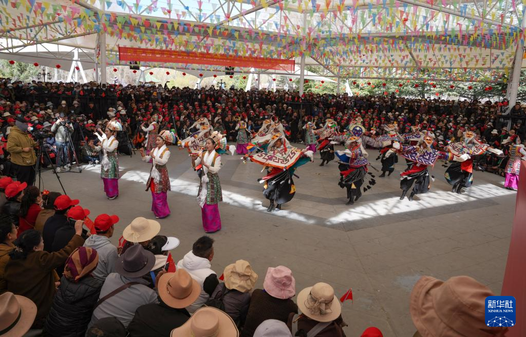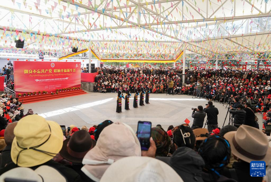 3月28日,群眾在拉薩市宗角祿康公園內(nèi)觀看文藝演出,慶祝西藏百萬農(nóng)奴解放65周年。新華社記者 晉美多吉 攝