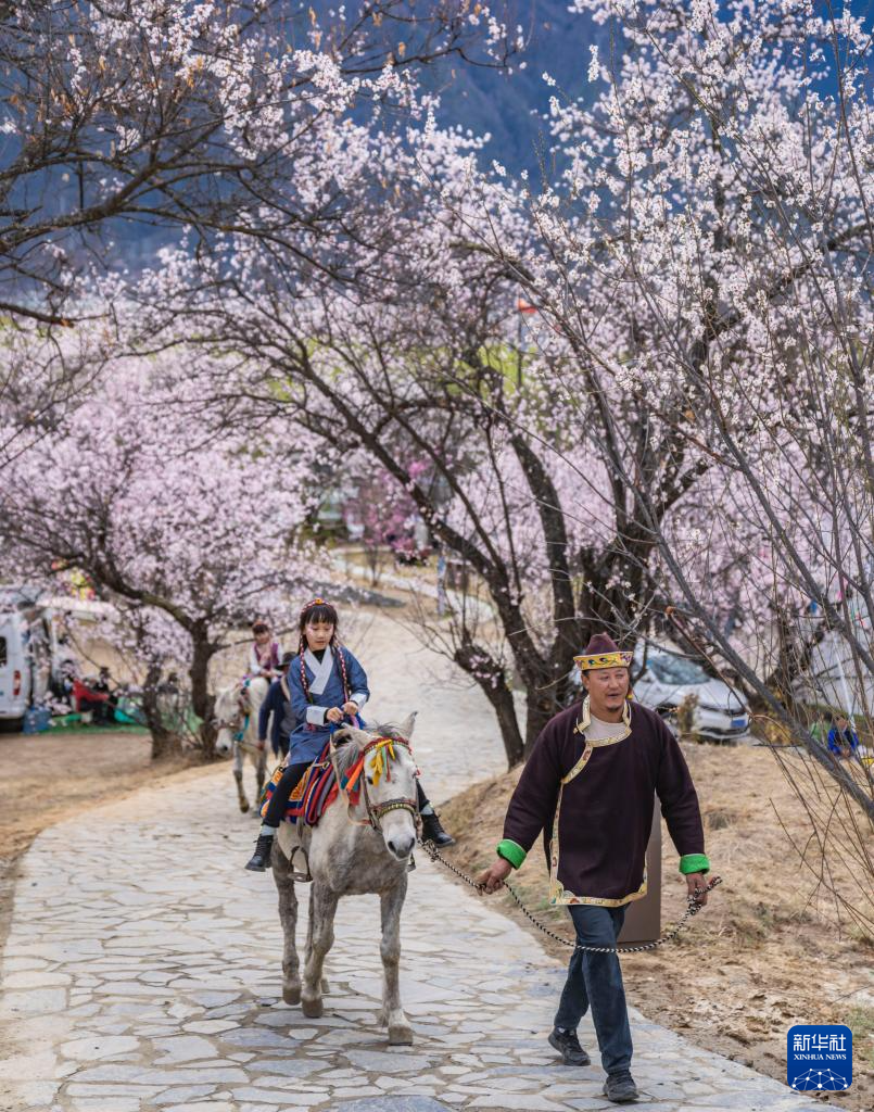 3月31日,游客在林芝市巴宜區(qū)嘎拉村體驗(yàn)騎馬。新華社記者 孫非 攝