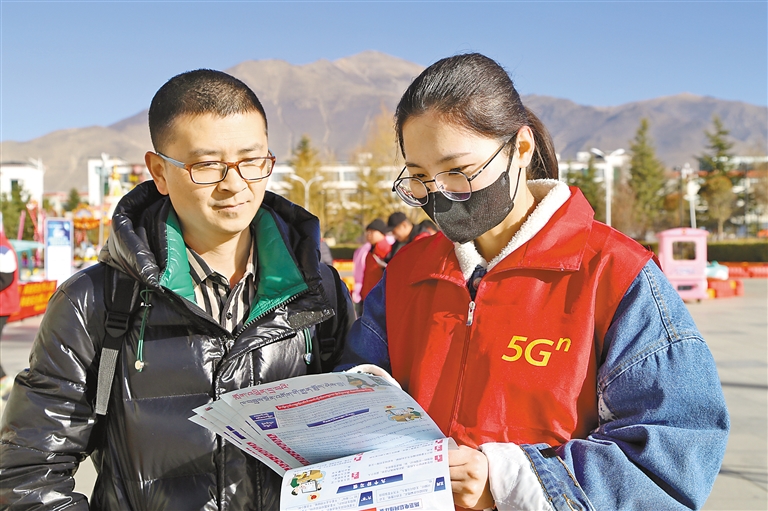 圖為電信、移動、聯通山南分公司工作人員在山南市體育場開展“文明用網 安全用網”專題宣傳教育活動。記者 武沛濤 攝