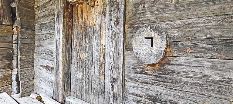 在村民的幫助下,我們依著鎖孔的形狀,將鑰匙平放進去,沉進鎖芯的孔道中,憑感覺挑起用小木塊做成的栓子,把沉重的木鎖從門邊的鎖洞中移除。接著,再用手伸進鎖洞中摸索著移動房門后的木栓,即內(nèi)鎖,多次嘗試后終于打開了一間糧倉!