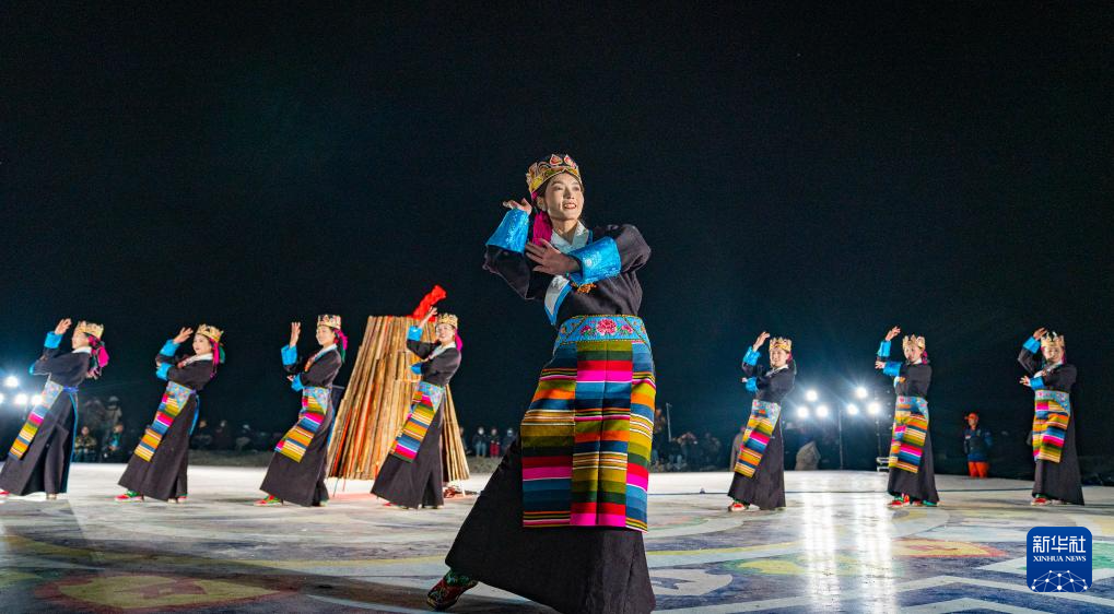 舞蹈演員在納木錯開湖篝火晚會現(xiàn)場表演(5月18日攝)。新華社記者 丁增尼達(dá) 攝