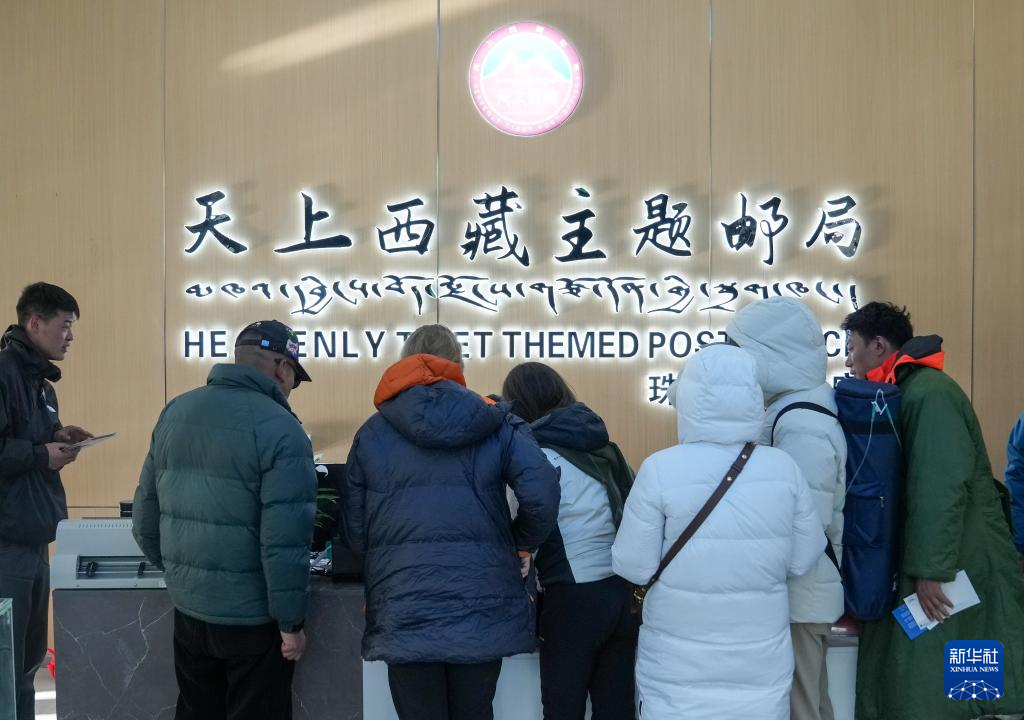 游客在位于珠峰游客大本營(yíng)的郵局排隊(duì)購買明信片(5月24日攝)。