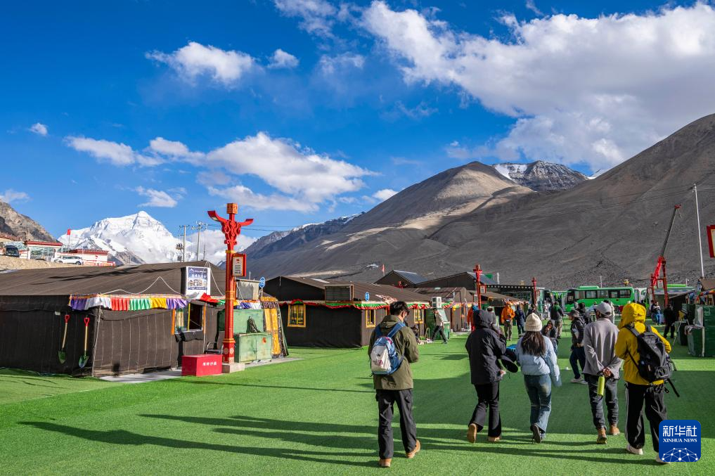 游客行走在珠峰游客大本營(yíng)(5月24日攝)。