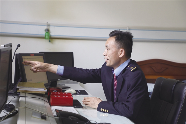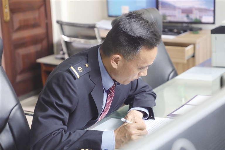 “這里的工作雖然看似單調(diào),實(shí)則責(zé)任很大?!辟R文貴身穿深藍(lán)色的鐵路制服,胸前佩戴著亮閃閃的工牌,顯得精神抖擻。他像一名嚴(yán)謹(jǐn)?shù)膽?zhàn)士,緊盯著操作臺,確認(rèn)信號,口呼手指?!∽鳛檐囌局蛋鄦T,賀文貴每天的任務(wù)主要是監(jiān)視列車進(jìn)路和區(qū)間動(dòng)態(tài),保證行車安全。工作中的他認(rèn)真負(fù)責(zé),嚴(yán)格執(zhí)行標(biāo)準(zhǔn)化作業(yè),他常說:即使單人值守,該有的程序、作業(yè)步驟一項(xiàng)都不少,作業(yè)標(biāo)準(zhǔn)必須嚴(yán)格執(zhí)行,保證作業(yè)安全。
