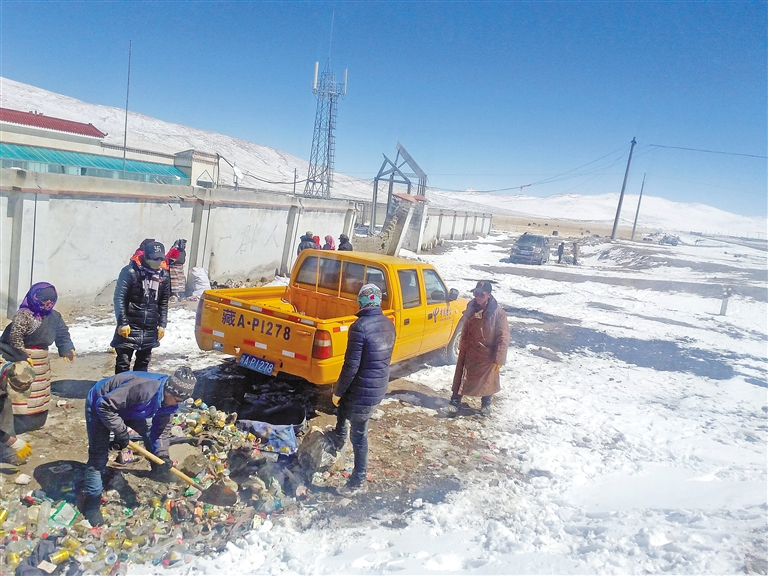 2017年3月,中國電信西藏公司駐霍爾巴鄉(xiāng)貢桑村工作隊組織群眾在219國道沿線清理垃圾。