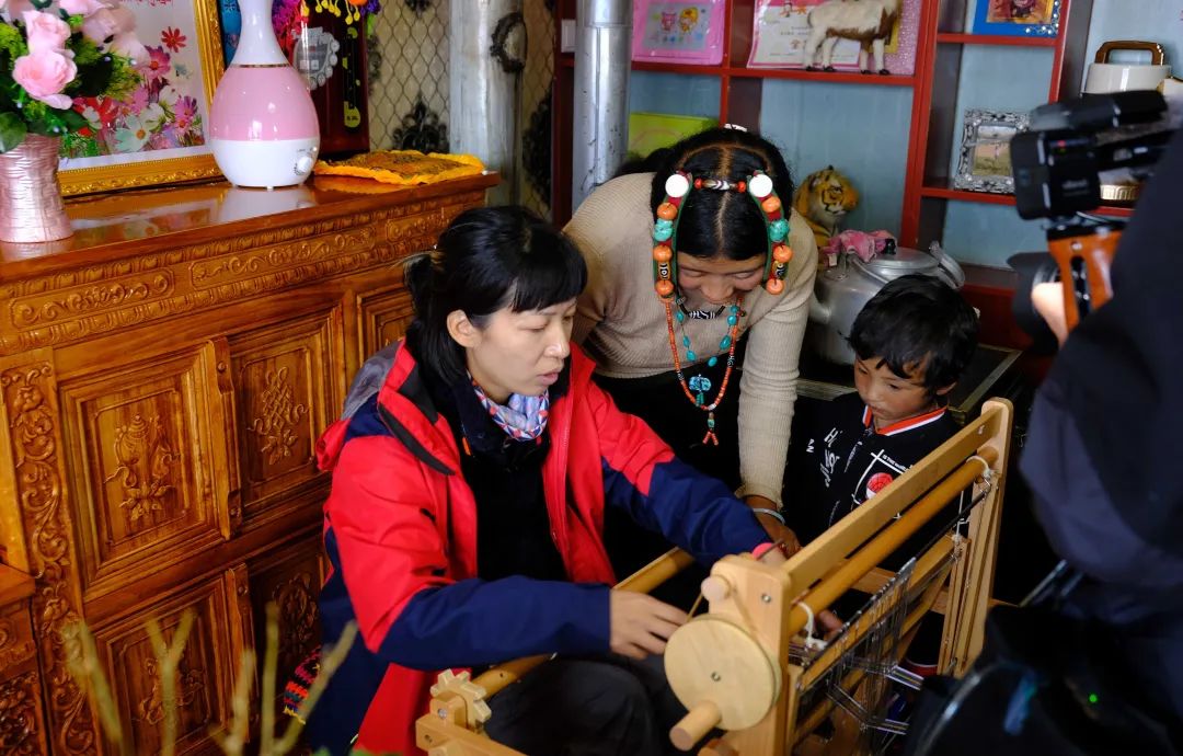 22號,我們和當(dāng)?shù)氐哪僚砗头掂l(xiāng)大學(xué)生們一起組裝織布機(jī),在杭州覺得非常簡單的工作,在這里顯得非常費(fèi)力,高海拔的體力消耗,一會兒就要坐下大喘氣休息。慶幸本地的大學(xué)生與牧女們非常好學(xué),第一天大家齊心協(xié)力組裝完成了30臺織布機(jī),當(dāng)天培訓(xùn)中正好遇見了浙江衛(wèi)視拍攝“大山里的浙江人”大型融媒體新聞行動!看著浙江來的新聞媒體人都隨身吸氧,感嘆來的人真的是太不容易了,想為浙江人鼓掌!
