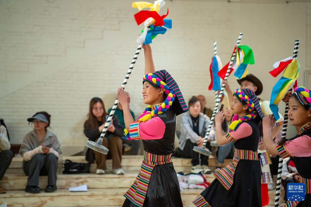 6月5日,拉薩市特殊教育學(xué)校的孩子們?cè)谛聲l(fā)布現(xiàn)場表演舞蹈。新華社發(fā)(旦增努布 攝)
