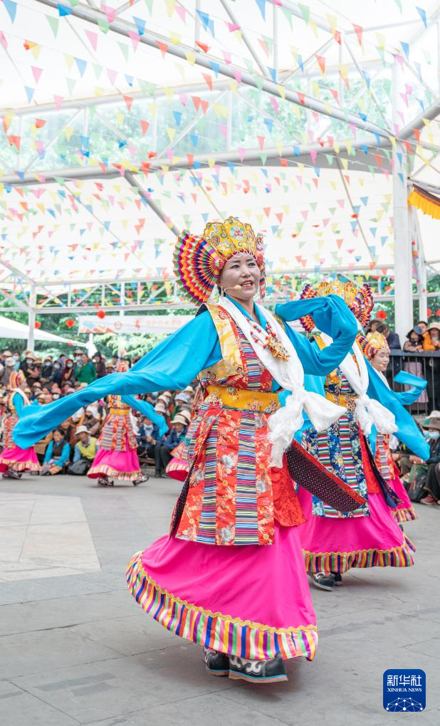 6月11日,藏戲藝人在拉薩市宗角祿康公園表演。新華社記者 丁增尼達 攝