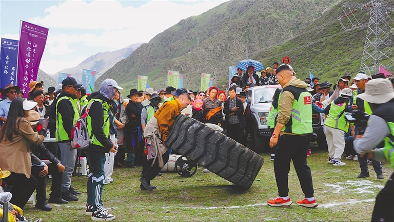 圖為村民參加“大力士”比賽。