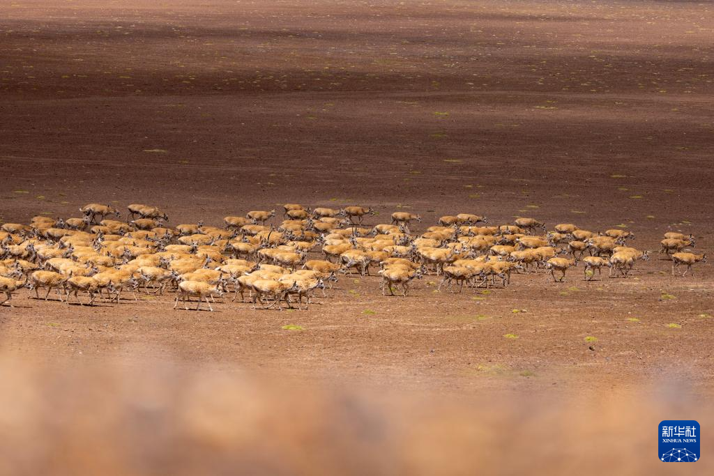 遷徙途中的藏羚羊(6月13日攝)。新華社記者 晉美多吉 攝